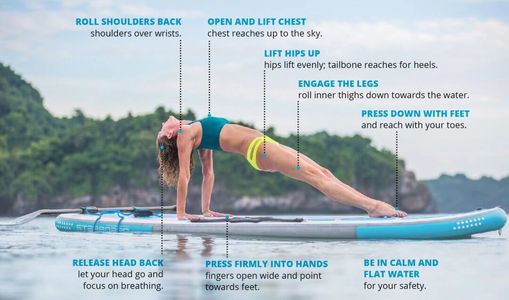 SUP Yoga is the practice of yoga on a stand up paddle board on a body of water. SUP Yoga has become a trending water sport for yogis and for those who already enjoy paddle boarding. In fact, many yogis are improving their yoga skills tremendously by practicing SUP Yoga as it requires more strength, balance, and focus.